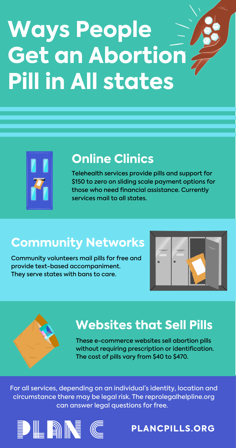 Miles de personas piden pastillas abortivas en línea cada día en todo EE.UU., y a menudo eligen la entrega por correo por su privacidad, asequibilidad y comodidad. La investigación de Plan C destaca los lugares en los que las personas adquiere una pastillas abortivas tiva por correo, con un directorio completo que explica las diferentes opciones disponibles en cada estado.
